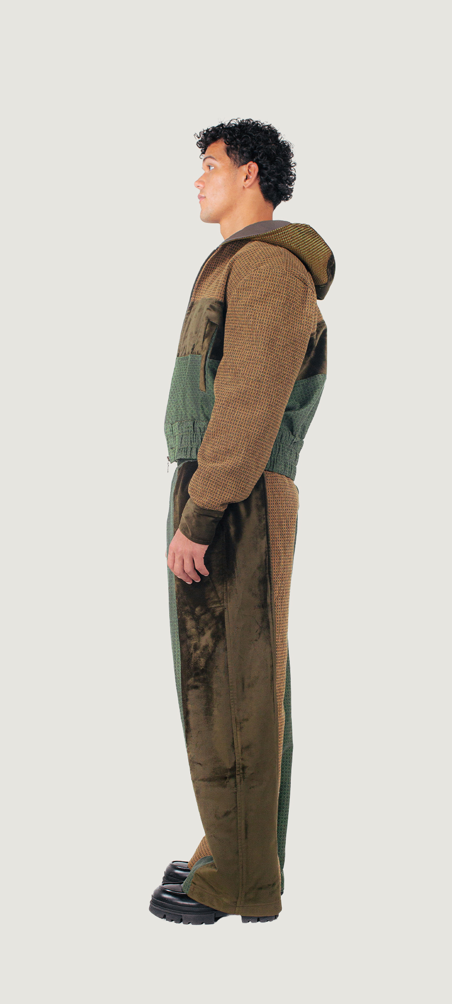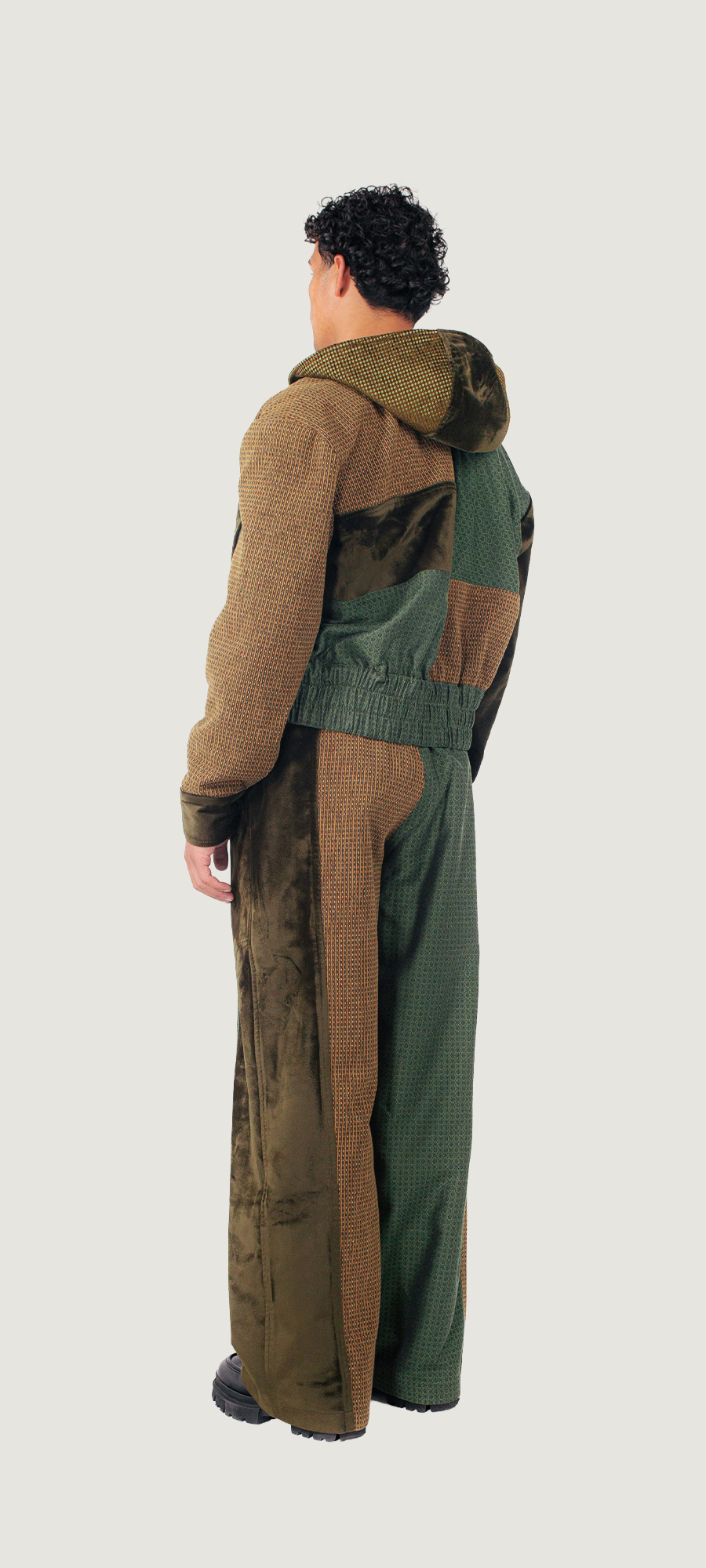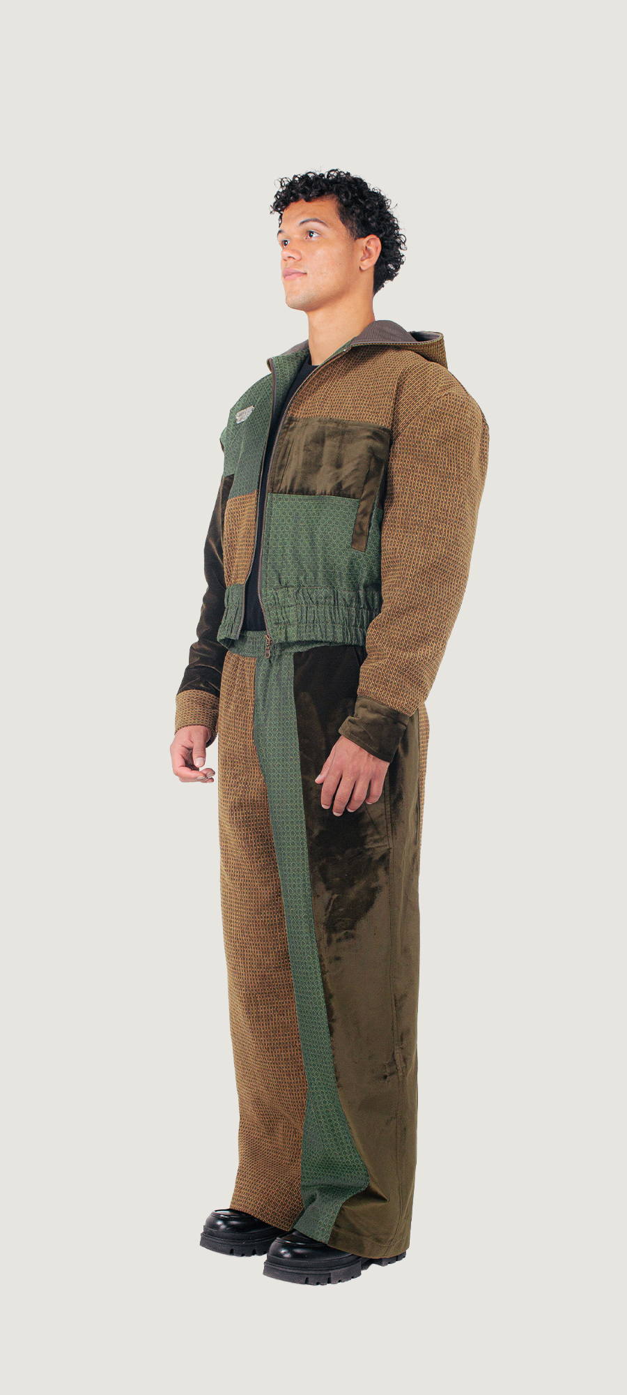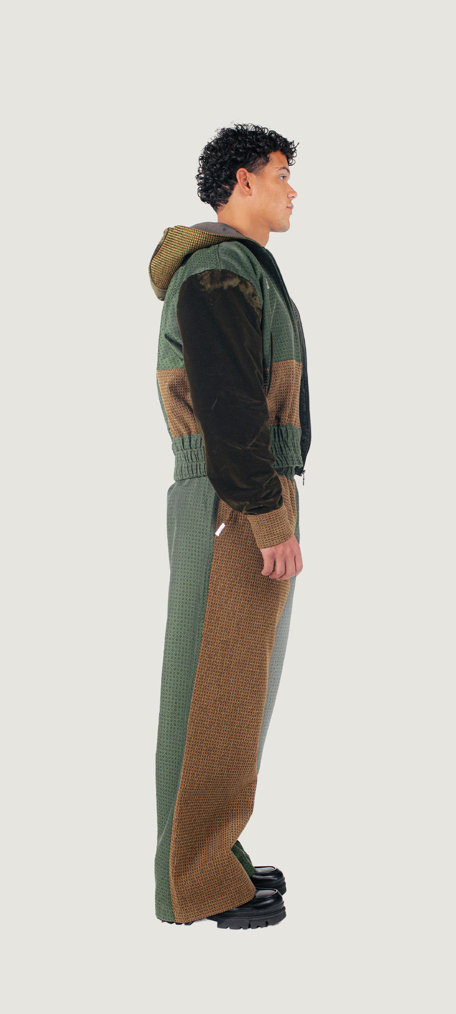 Gemaakt van tweedehands gordijnen en rest materialen van meubelmakers.